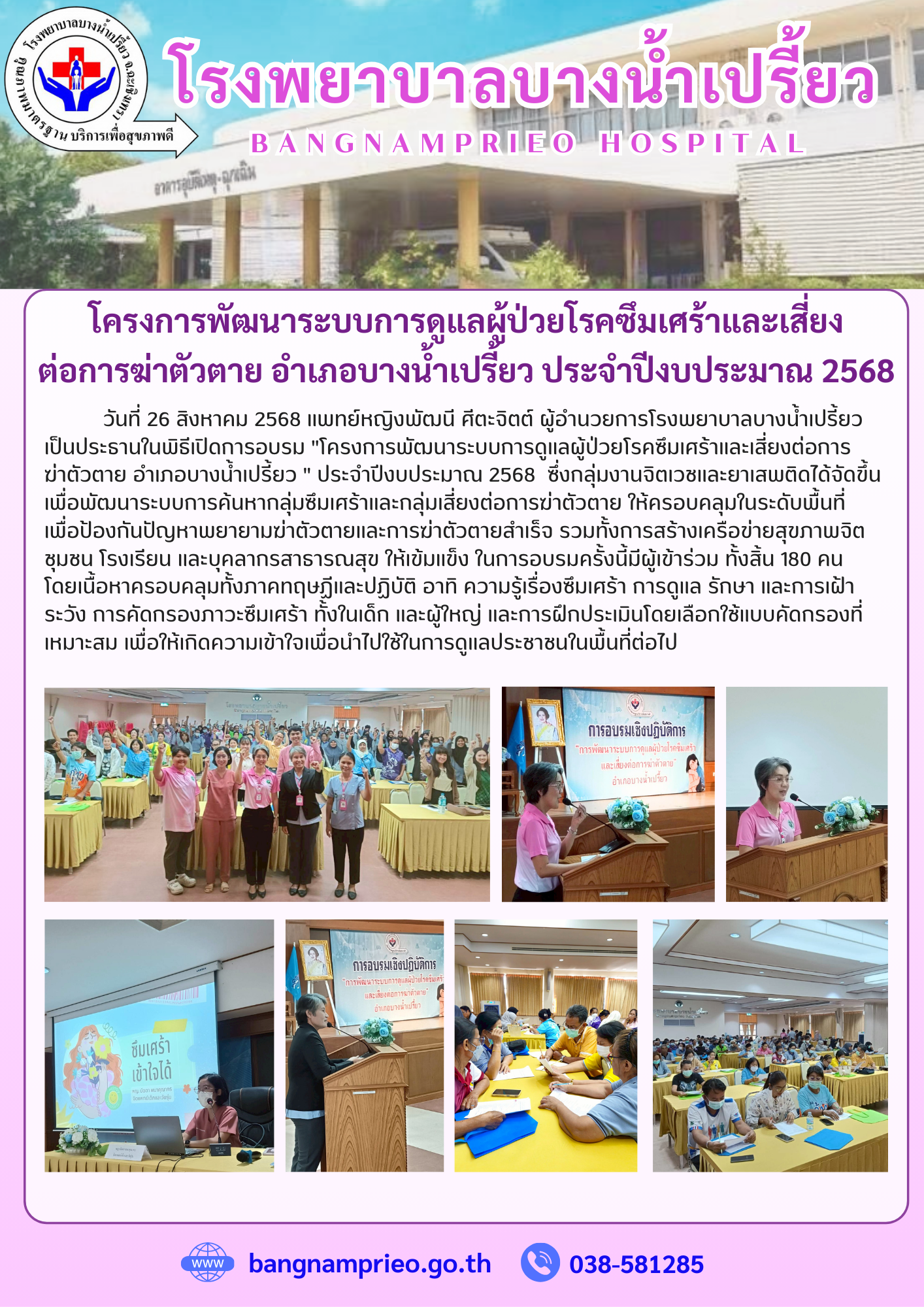 Home สรุปผลการดำเนินงาน ข้อมูลสถิติและสภาวะสุขภาพ ผลงานตามยุทธศาสตร์ PSPG / KPI แผนปฎิบัติการ/โครงการสำคัญ ผลงานเด่น ITA 2568 ITA 2567 ITA 2566 ITA 2565 ข่าวประชาสัมพันธ์ ข่าวประชาสัมพันธ์ 7 มี.ค. 256717 พ.ย. 2024ratchakarn7ข่าวประชาสัมพันธ์ จัดซื้อจัดจ้าง ประกาศจังหวัดฉะเชิงเทรา เรื่องประกวดราคาซื้อครุภัณฑ์ไฟฟ้าและวิทยุ จำนวน 1 รายการ 14 ต.ค. 256814 ต.ค. 2025bangnaจัดซื้อจัดจ้าง ประกาศจังหวัดฉะเชิงเทรา เรื่องประกาศผู้ชนะการเสนอราคา ประกวดราคาจ้างเหมาบริการฟอกเลือดด้วยเครื่องไตเทียม ปีงบประมาณ 2569 7 ต.ค. 25687 ต.ค. 2025bangnaจัดซื้อจัดจ้าง ประกาศจังหวัดฉะเชิงเทรา เรื่อง เผยแพร่แผนการจัดซื้อจัดจ้าง ประจำปีงบประมาณ พ.ศ. 2569 19 ก.ย. 256819 ก.ย. 2025bangnaจัดซื้อจัดจ้าง ประกาศจังหวัดฉะเชิงเทรา เรื่องประกวดราคาจ้างเหมาบริการฟอกเลือดด้วยเครื่องไตเทียม ปีงบประมาณ 2569 18 ก.ย. 256818 ก.ย. 2025bangnaจัดซื้อจัดจ้าง ดูทั้งหมด กิจกรรมภายในโรงพยาบาล เจ้าหน้าที่ศูนย์สุขภาพชุมชนตำบลบางน้ำเปรี้ยว ออกเยี่ยมบ้านผู้ป่วยติดเตียง เจ้าหน้าที่ศูนย์สุขภาพชุมชนตำบลบางน้ำเปรี้ยว เยี่ยมบ้านผู้ป่วย LTC เจ้าหน้าที่ศูนย์สุขภาพชุมชนตำบลบางน้ำเปรี้ยว ออกเยี่ยมบ้านเจาะเลือดประจำปี ดูกิจกรรมทั้งหมด สื่อประชาสัมพันธ์ ThaID_info_2ThaID_info_1Digital-ID-ThaID รับสมัครงาน ประกาศโรงพยาบาลบางน้ำเปรี้ยว เรื่อง รับสมัครบุคคลเพื่อคัดเลือกเข้าปฏิบัติงานเป็นลูกจ้างรายคาบ จำนวน 2 ตำแหน่ง 2 อัตรา 14 ต.ค. 256814 ต.ค. 2025bangnaข่าวรับสมัคร ประกาศผลการคัดเลือกบุคคลเพื่อบรรจุแต่งตั้งเป็นลูกจ้างรายคาบ 27 ส.ค. 256827 ส.ค. 2025bangnaข่าวรับสมัคร ประกาศรายชื่อผู้มีสิทธิ์เข้ารับการคัดเลือกการประเมินสมรรถนะเพื่อปฏิบัติงานเป็นลูกจ้างรายคาบ 21 ส.ค. 256821 ส.ค. 2025bangnaข่าวรับสมัคร รับสมัครบุคคลเพื่อคัดเลือกเข้าปฏิบัติงานเป็นลูกจ้างรายคาบ (2 ตำแหน่ง 3 อัตรา) 6 ส.ค. 25686 ส.ค. 2025bangnaข่าวรับสมัคร ดูงานทั้งหมด